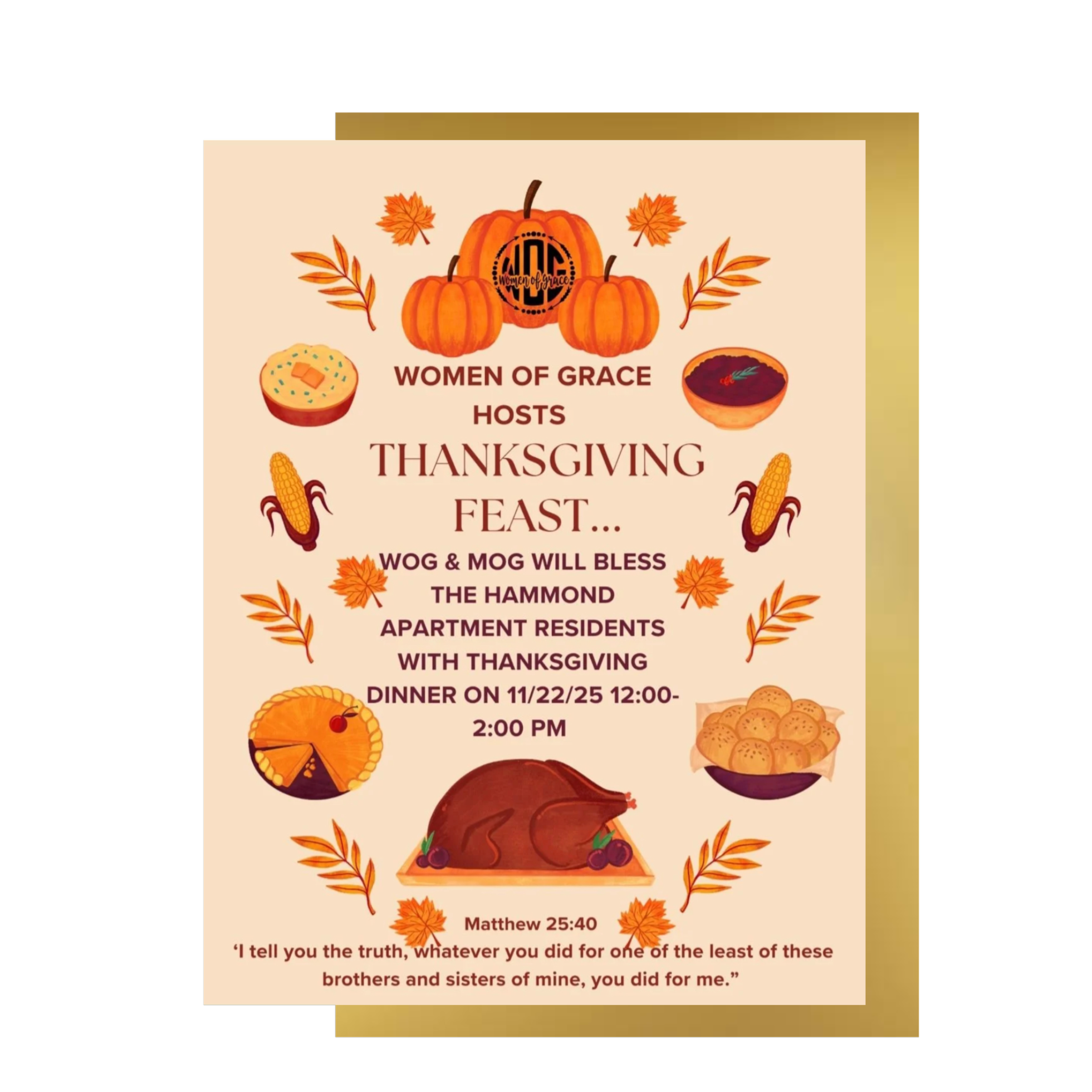 Thanksgiving Feast Outreach - Hammond Apartments Serving familes with meals, prayer, and love.