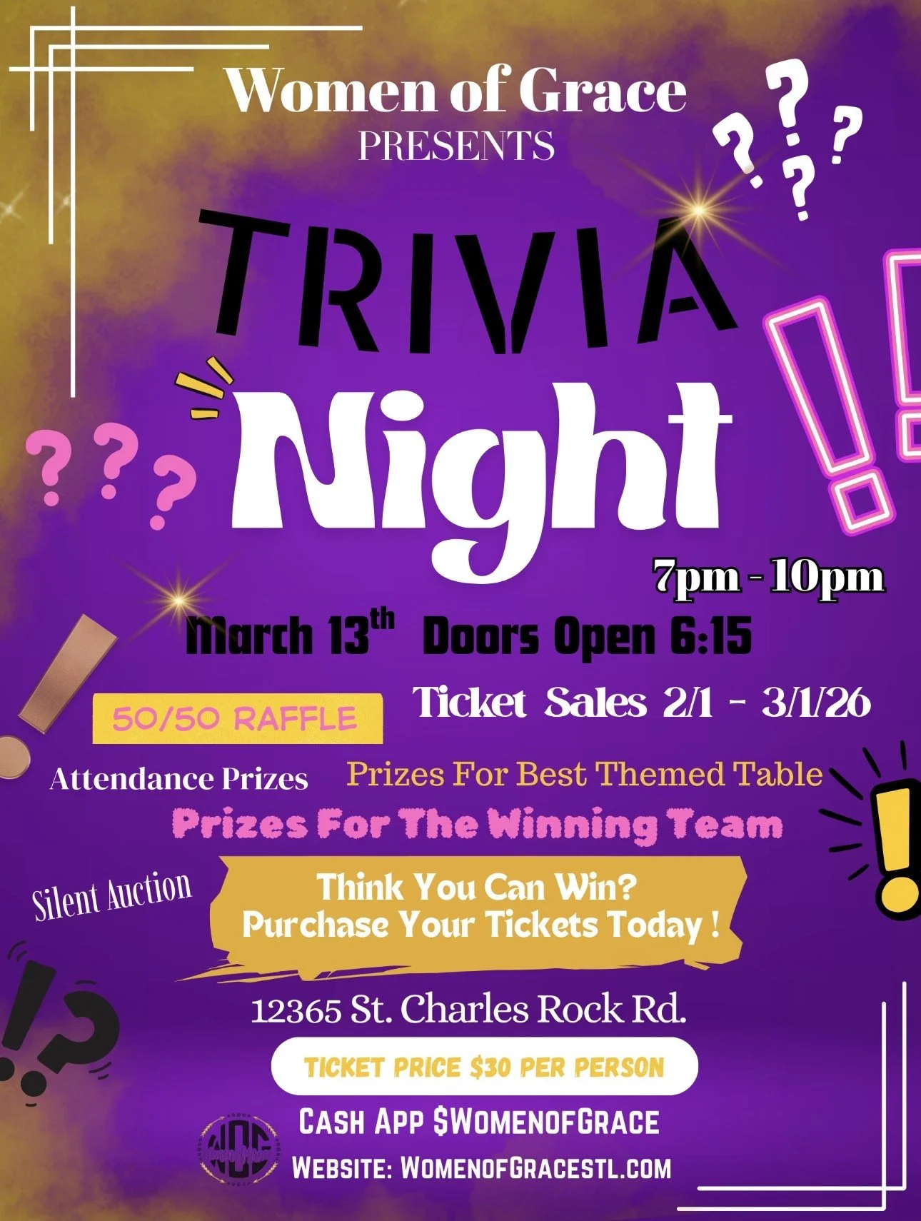 Contact a WOG Member today to get your ticket and secure your seat. Tickets maybe also be purchased here (website) or via cash app $womenofgrace. We look forward to seeing you on October 21st!